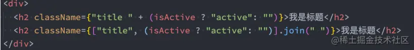 <h2 style={{color: "red", fontSize: `${titleSize}px`}}>我是标题</h2>