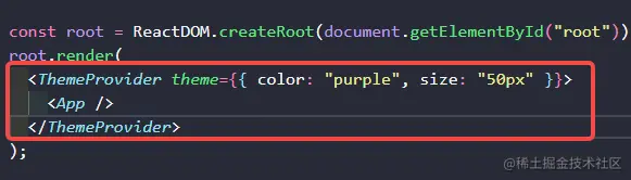 - 引入ThemeProvider,并在根组件外侧进行包裹,并通过theme传递数据