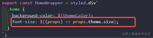 如果styled-components中的样式不希望写死,而是希望通过外部传递的话可以直接将传递的数据写在创建好的样式组件上,此时在组件内部便可以通过props接收: