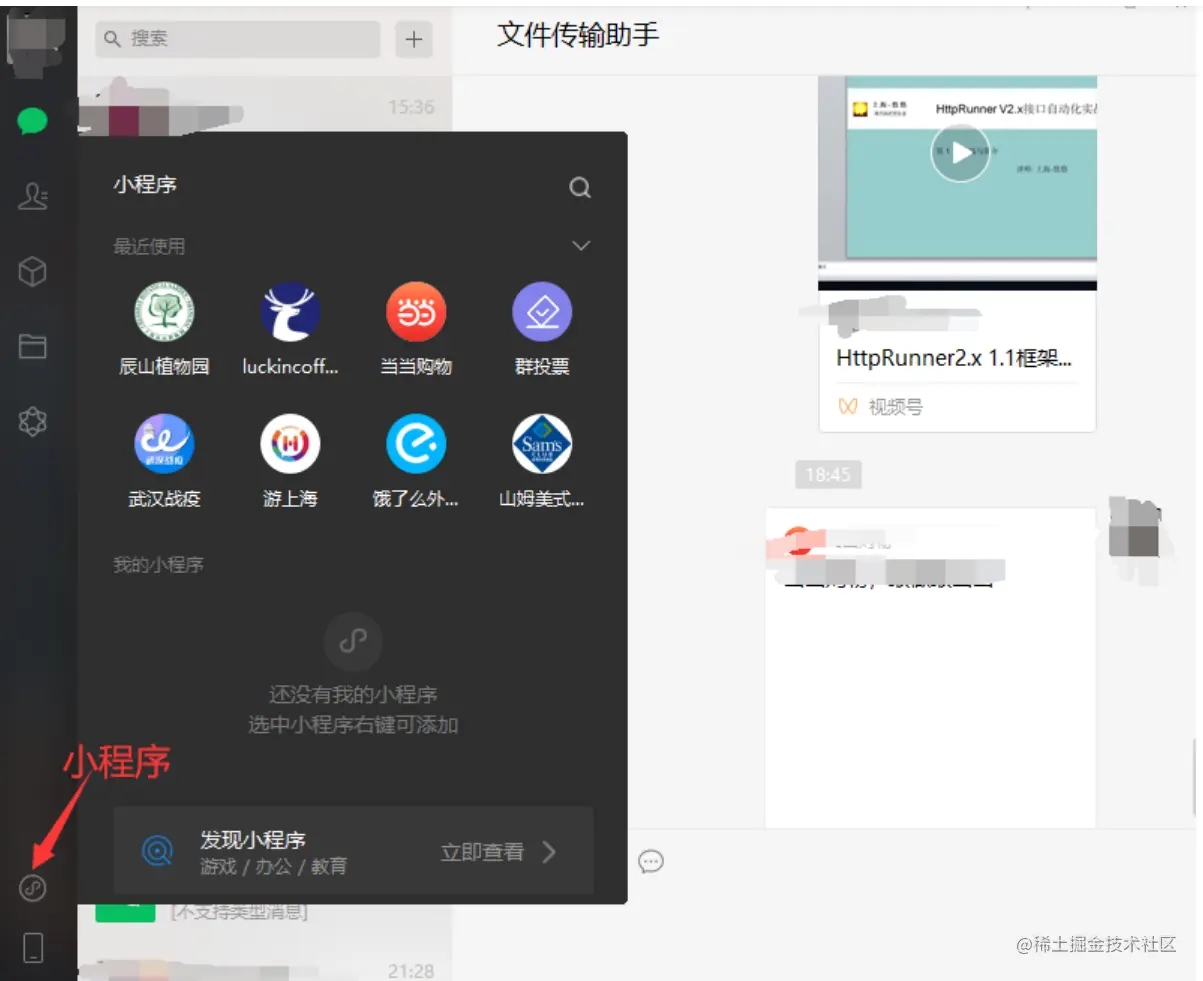 电脑端登陆微信-点开小程序