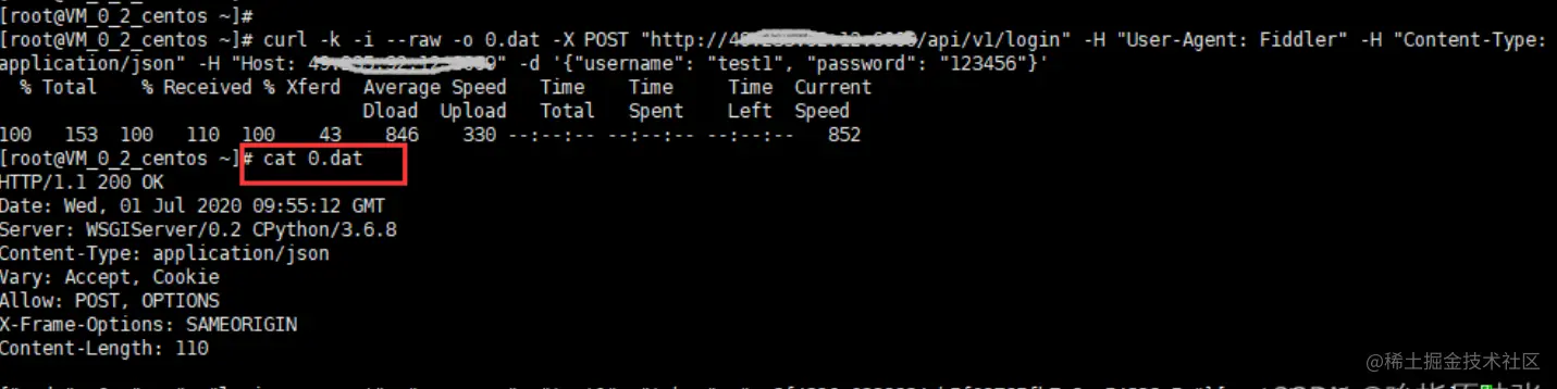 下面是带上’-o 0.dat’ 参数,可以通过cat 0.dat查看保存到本地的报文内容