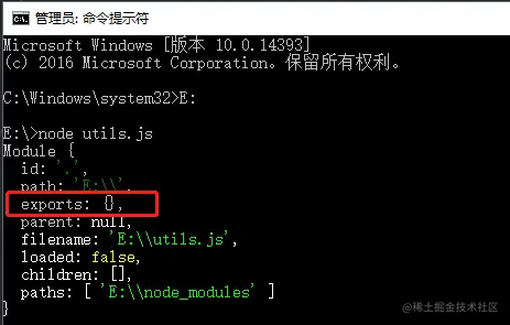 而utils.js中的module.exports已经被重新赋值了,引用指向了另外一个对象,而exports的引用还是指向原来的空对象,