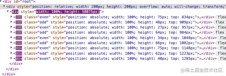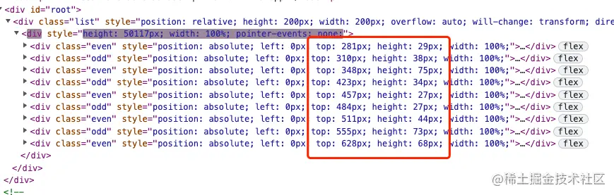 对于容器总高度来说,因为每个字元素高度不定,而每次也只是渲染可视区内几个元素,所以不能直接写死,我们开始可以先预估一个总高度,最少元素是可以滚动起来的,但我们得到真实的子元素高度后,我们可以动态计算容器总高度,即容器总高度 = 测量过的真是的高度 + 预估的高度;