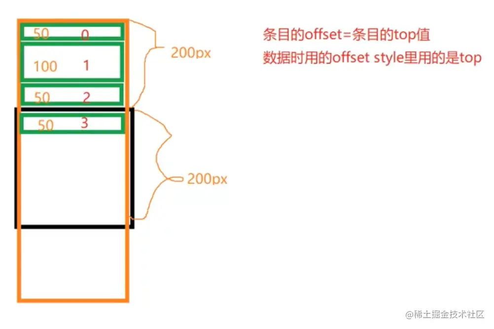 那我们如何能获取到可视区域的开始的索引呢?因为我们定义了 lastMeasuredIndex 用来记录已经缓存的索引,我们正常的使用都是从上到下滚动,即从 0 开始,所以当我们从 0 索引开始计算到某一个元素的 offset 值超过滚动的 scrollTop 时,我们就获得了可视区域内的第一个索引值,即开始索引