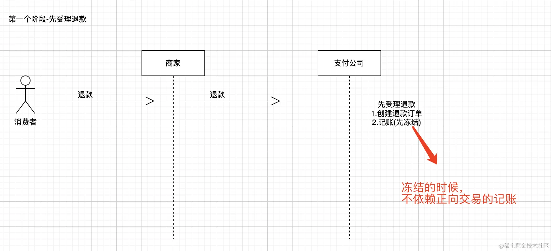 为什么要先冻结?冻结的目的是,先把商家的钱冻结住,不让商家提现,本质是为了解决在真正退款的时候,要确保商家余额有钱可退款。否则,就可能导致支付公司资金损失。