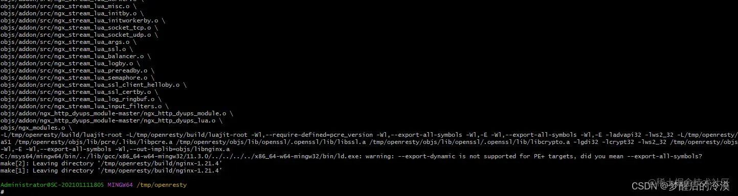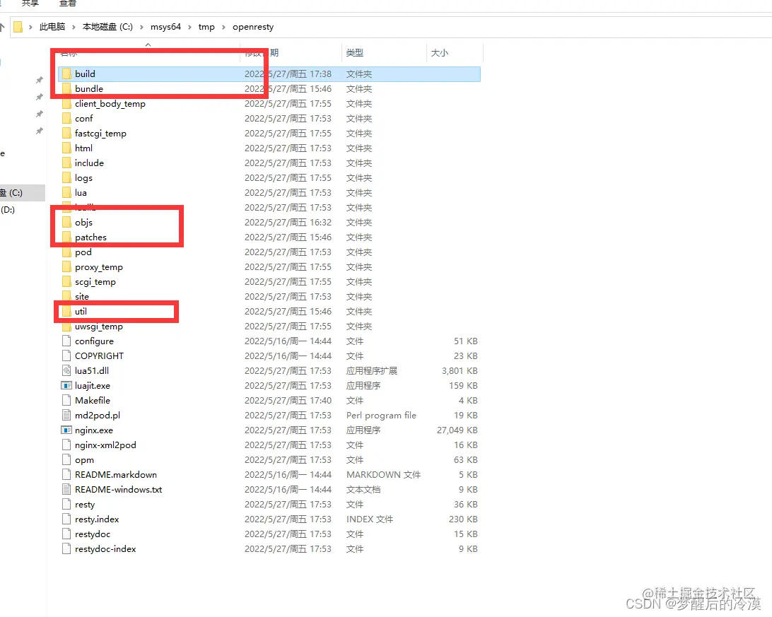 2.然后把openresty-1.21.4.1.tar.gzz解压到/tmp的目录下,并命名为openresty, 在openresty目录下建文件夹objs/lib,
