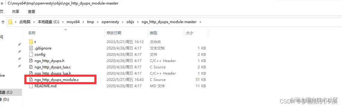 4.到lua-upstream-nginx-module-master目录下,修改ngx_http_dyups_module.c文件