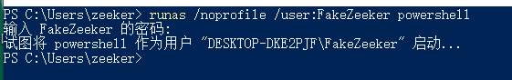 runas /noprofile /user:FakeZeeker powershell