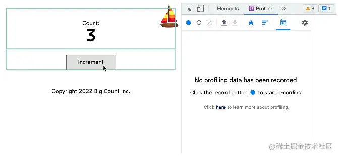 当 count 变量改变时,Couter 的后代 BingCountNumber 也会被重新渲染。但父级组件 App 是不会被重新渲染的,也包括 App 的后代之一 footer。