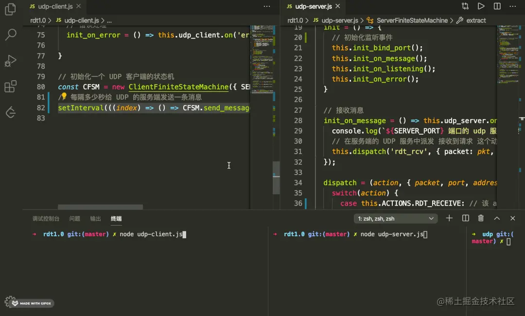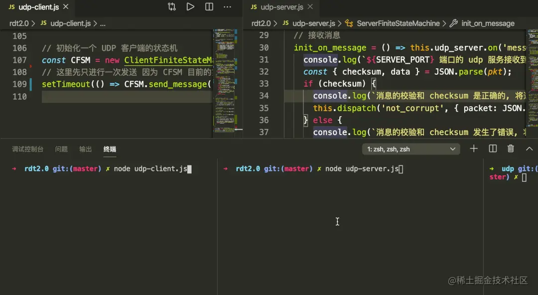 本次我们会从 0 一点点开始写,使用的语言是 nodejs,底层会使用 UDP 协议作为基本的传输层进行两端通信,我们将会一点点地把不可靠的通信变成一个可靠的 rdt 协议。