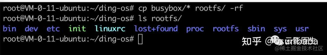 - 此时 rootfs 目录下应该啥也没有呢,直接把 busybox 下的东西拷贝进来