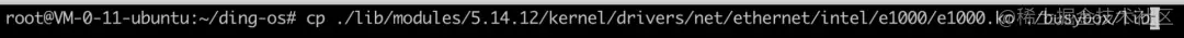 - 另外由于启动时指定的网卡名是 e1000,但是在编译内核的时候可能并没有把 e1000 直接编译进来,所以需要以模块的方式加载 e1000.ko将 lib 目录下的 e1000.ko 复制到 busybox/lib 的目录下