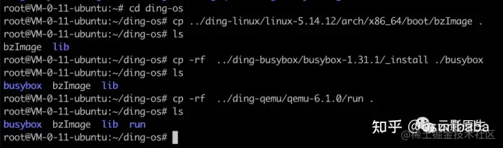 - 然后将镜像以及 busybox 编译出来的东西还有 qemu 编译出来的东西都拷贝过来