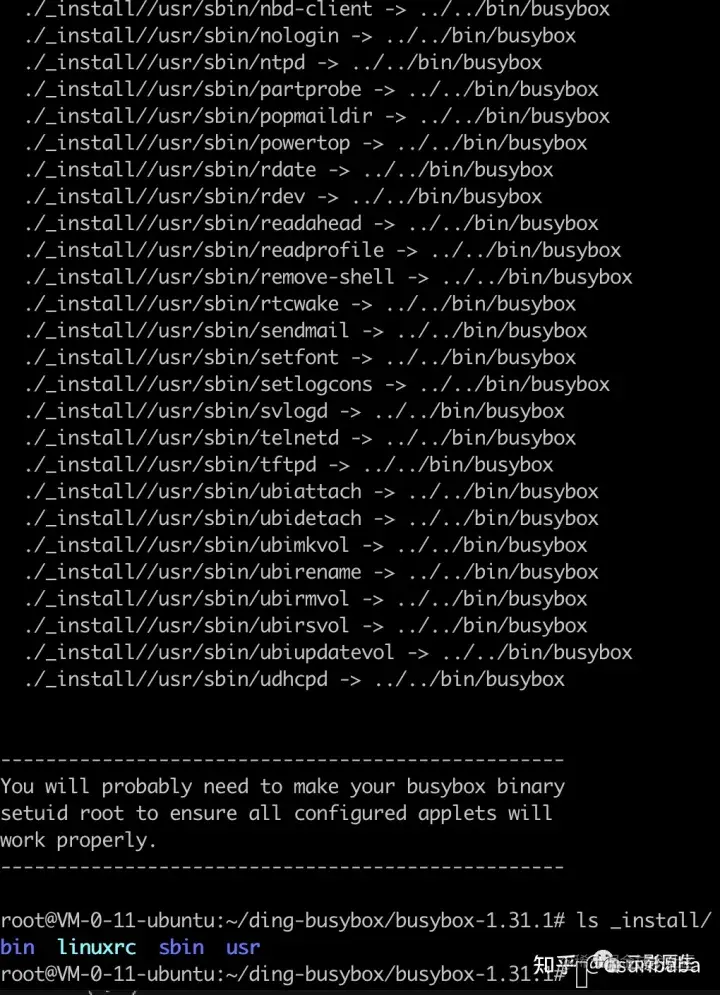 - 开始制作 initramdisk,也就是虚拟 rootfs。简单解释一下 ramdisk 是个啥:ramdisk 其实就是在内存也就是 ram 上虚拟出来的块儿设备,操作方法约等于操作磁盘,但是由于是内存,所以读写速度更快。