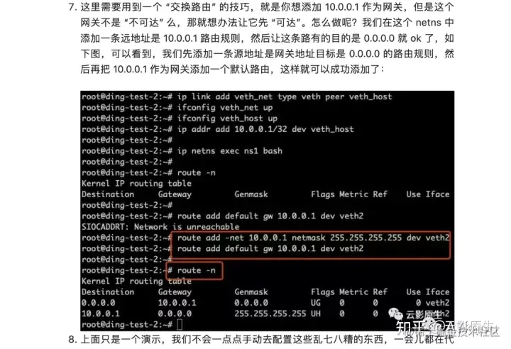 route add -net 169.254.1.1 netmask 255.255.255.255 dev veth2