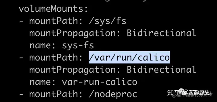 可以在 yaml 中看到这个 unix.socket 文件被 volume mount 到了 host 的 /var/run/calico: