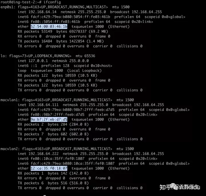 但是 MACVlan 设备则不然,每台设备的 MAC 地址都是独一无二的: