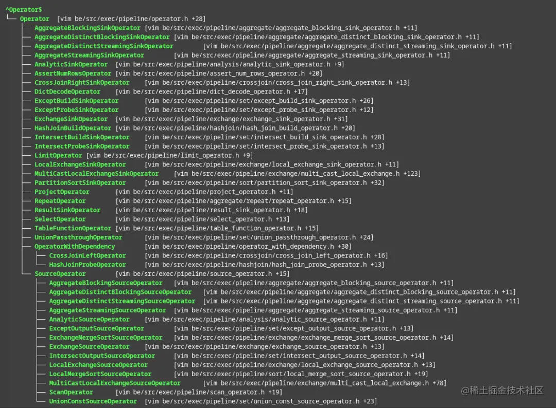 - set_finished:关闭输入和输出,调用后,is_finished、has_output、need_input 都返回 false,pull_chunk 和 push_chunk 不可调用,当 Pipeline 中 HashJoinProbeOperator 和 LimitOperator 算子产生短路并且提前结束时,需要调用前置算子 set_finished 函数。如果两个算子之间通过专门的 Context 交换数据,则 set_finished 函数中,需要正确地重置 Context 状态,一个算子需要感知到另外一个算子的 set_finished 函数调用。比如 LocalExchangeSinkOperator 和 LocalExchangeSourceOperator。