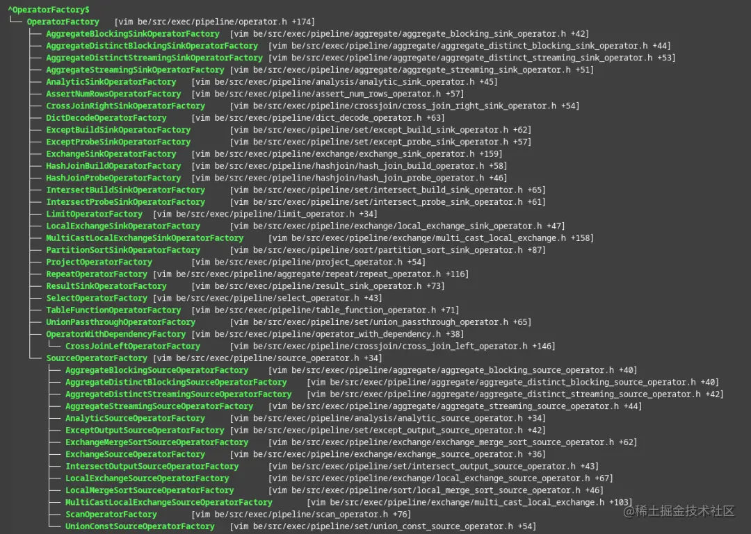 - Drivers:FragmentContext 包含一组 PipelineDriver,PipelineDriver 通过 Pipeline 创建,来自同一个 Pipeline 的 PipelineDriver 的数量,取决于 Pipeline 并行度。