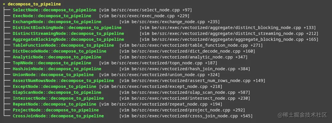 PipelineBuilder::build 主要从执行树 root 节点开始,递归调用 decompose_to_pipeline 函数。