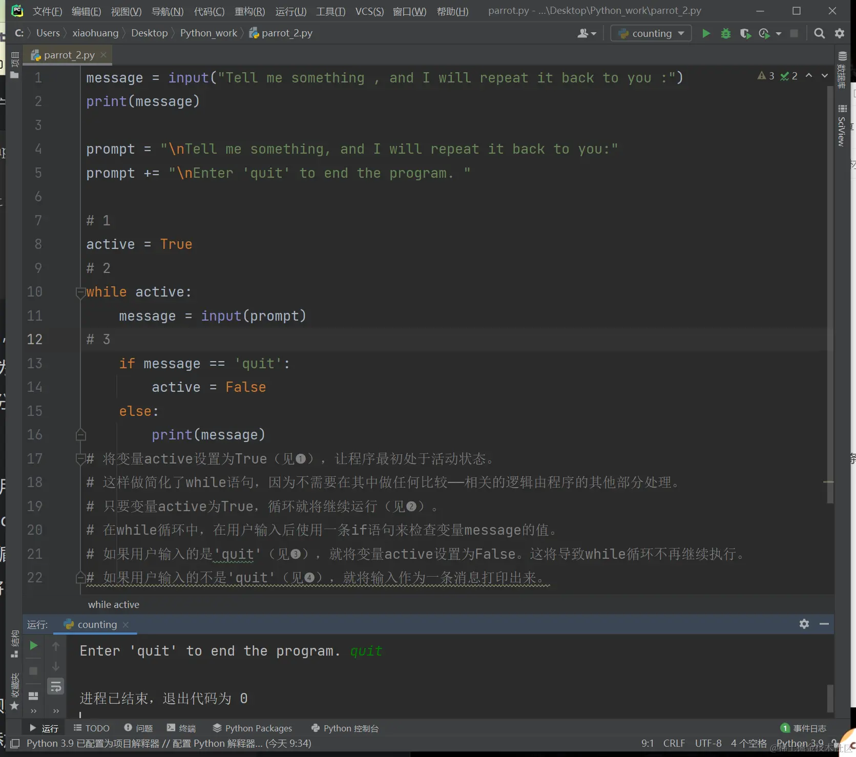 - 如果你希望程序在用户输入特定值时结束,可运行程序并输入这样的值。