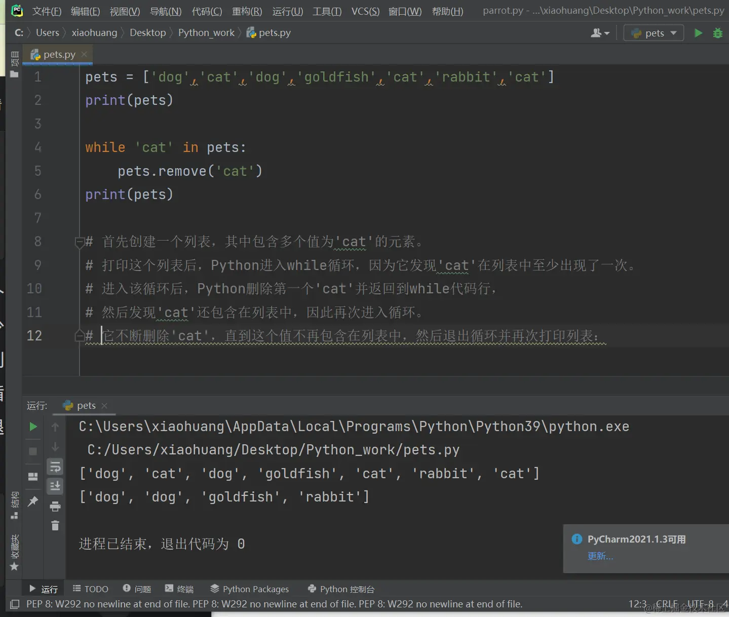 三、使用while循环处理列表和字典: