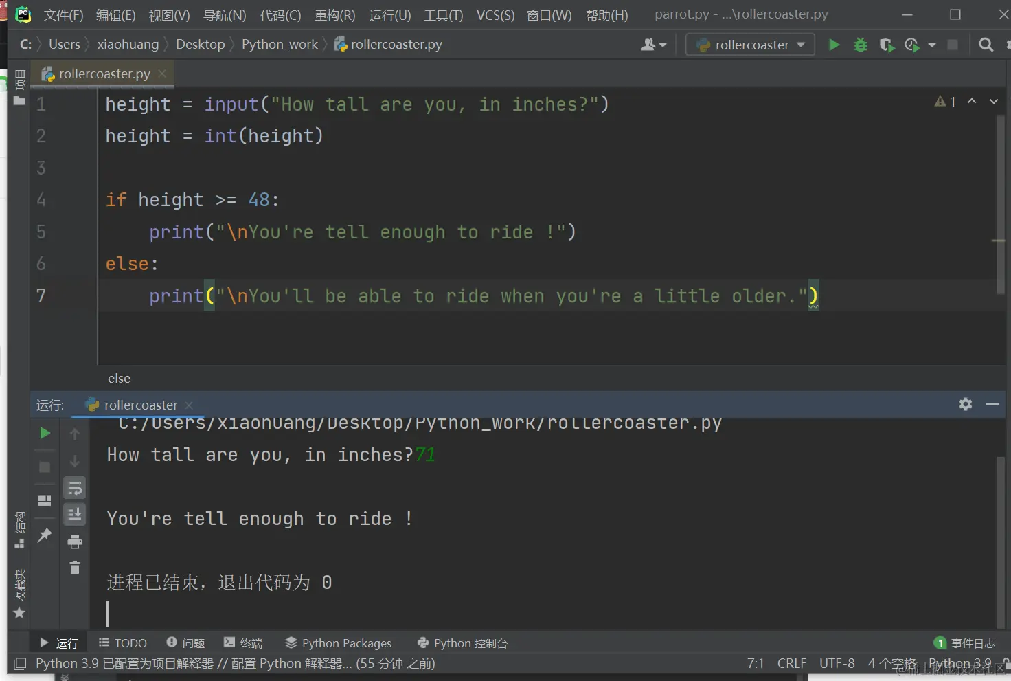 - 在此程序中,为何可以将height同48进行比较呢?因为在比较前,height = int(height)将输入转换成了数值表示。