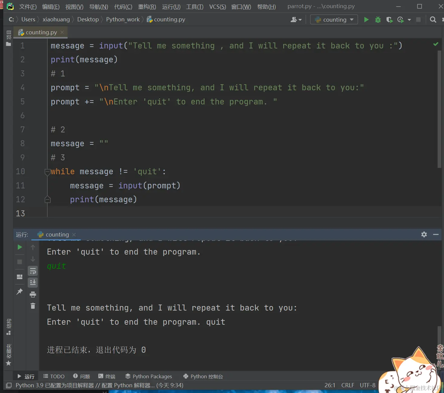 - 注意:Sublime Text等众多编辑器不能运行提示用户输入的程序。你可以使用Sublime Text来编写提示用户输入的程序,但必须从终端运行它们。