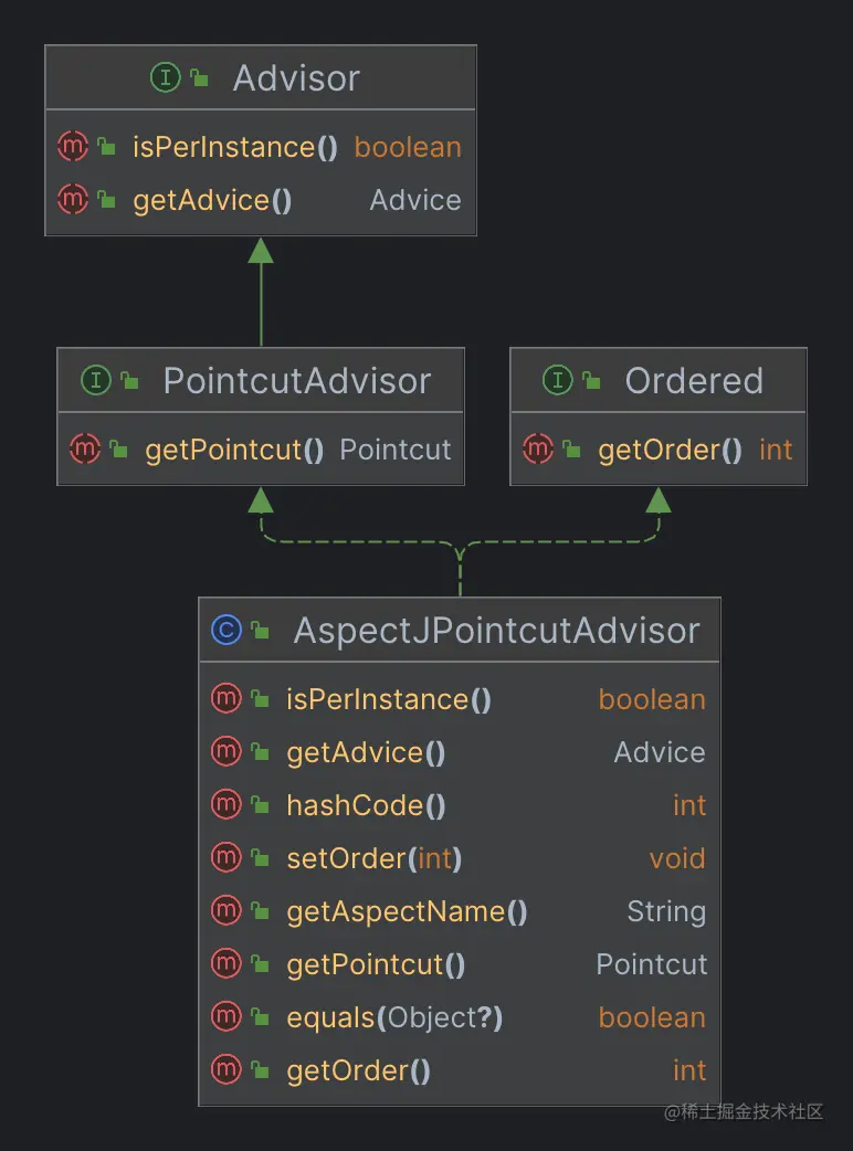 AspectJPointcutAdvisor 类型的继承结构也很简单,我们看一下。