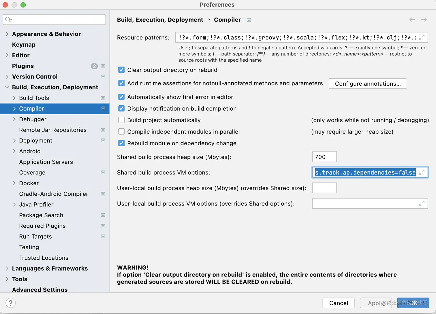 在Preferences | Build, Execution, Deployment | Compiler