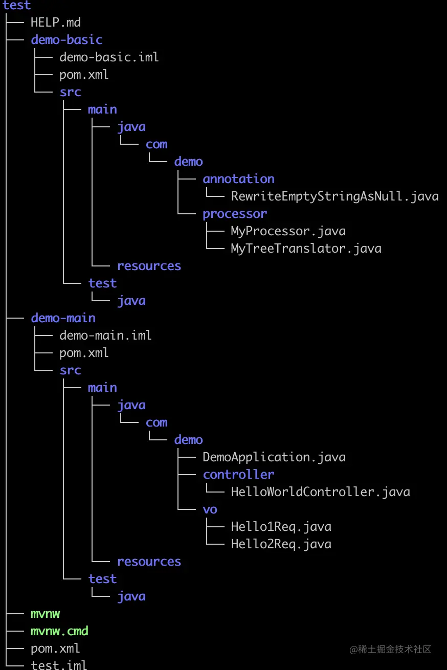 - 这里以一个多模块maven项目为例,项目结构如下,启动类为