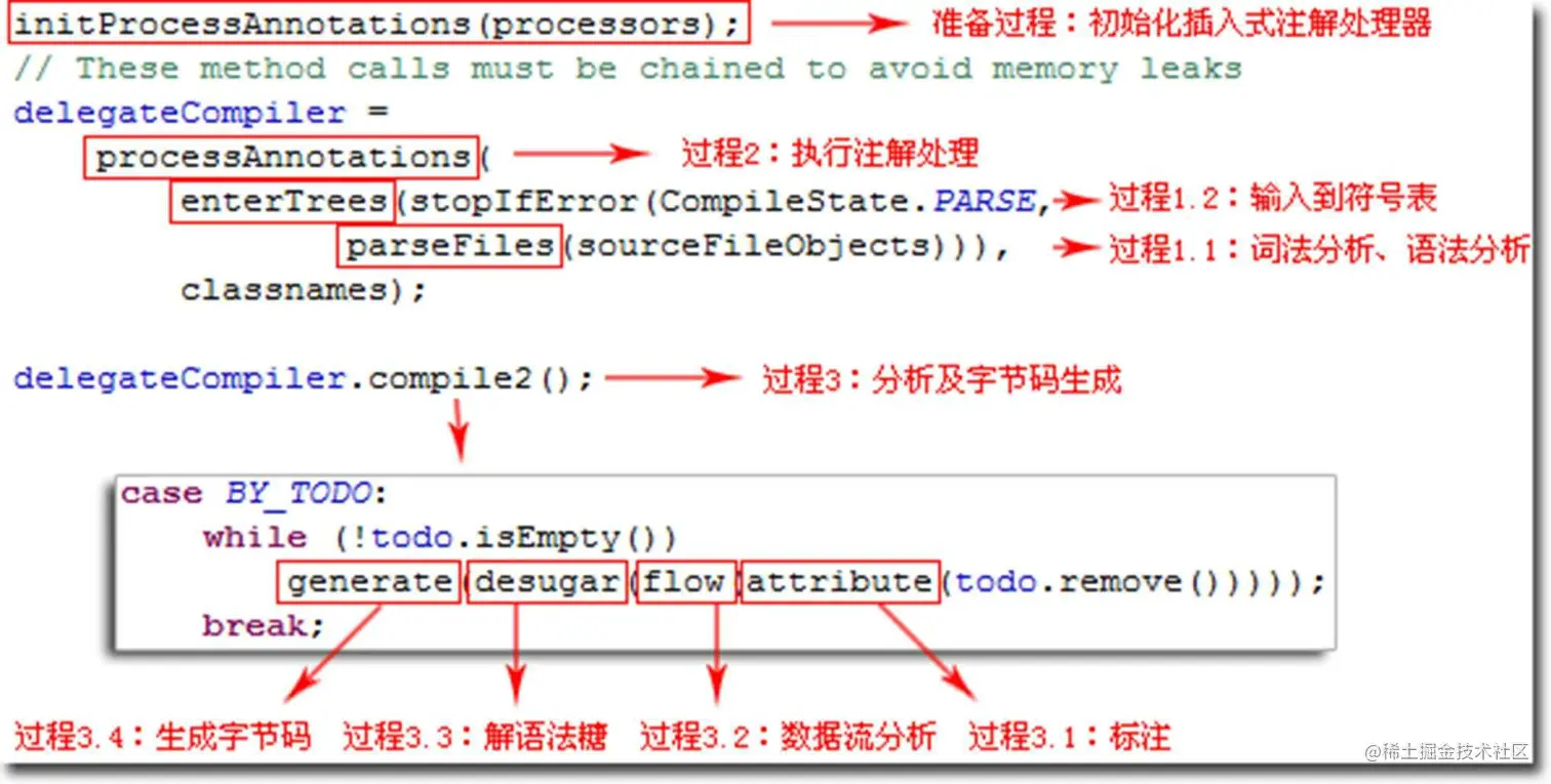 - 分析与字节码生成过程,包括:
