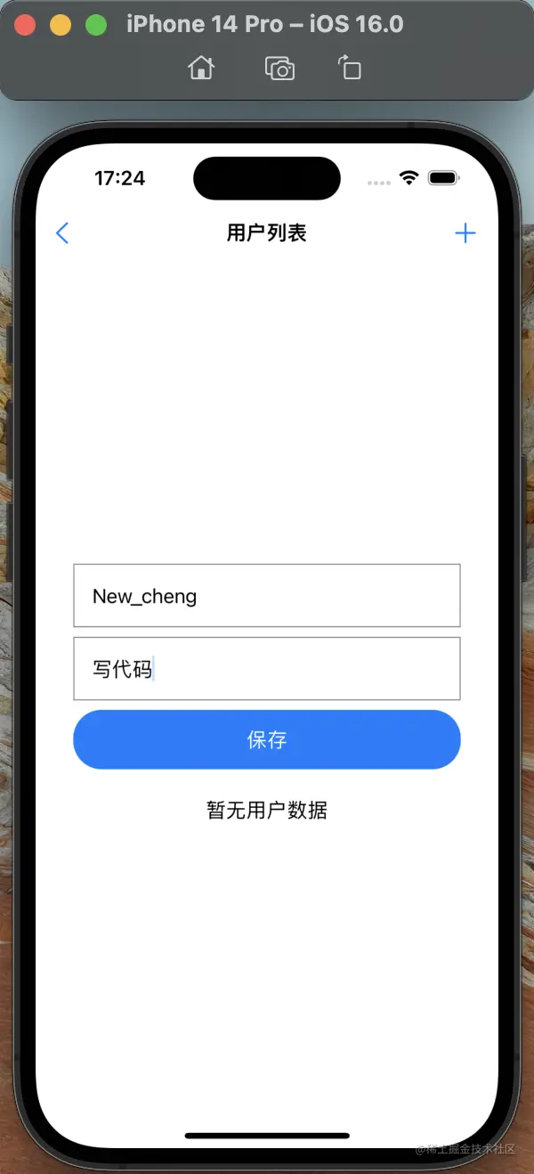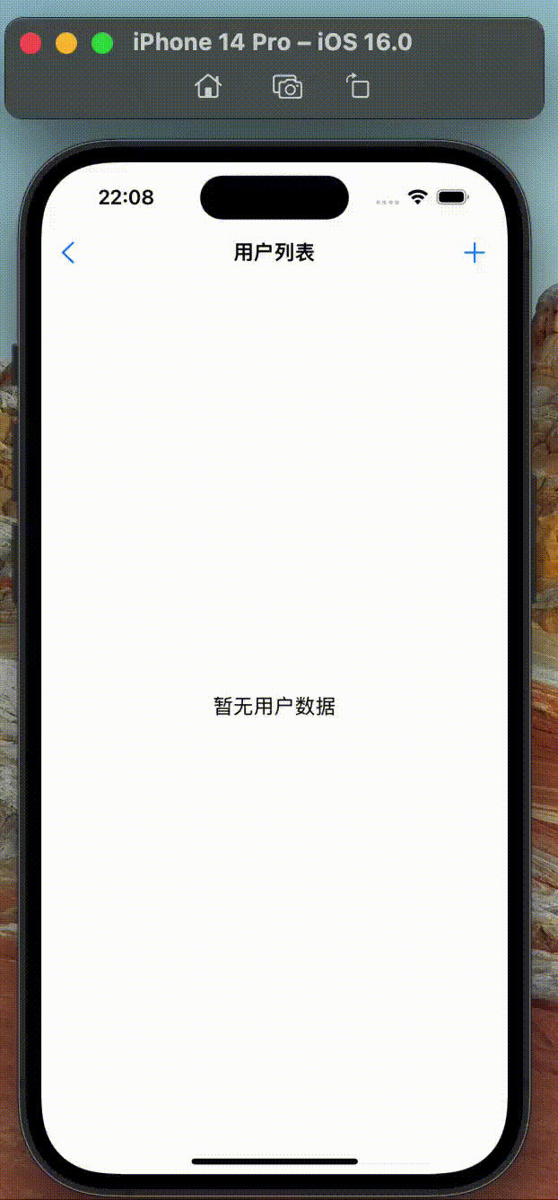 UI准备工作完成,现在新增数据时,我们需要通过 viewContext 获取到实体,然后给实体的属性赋值。