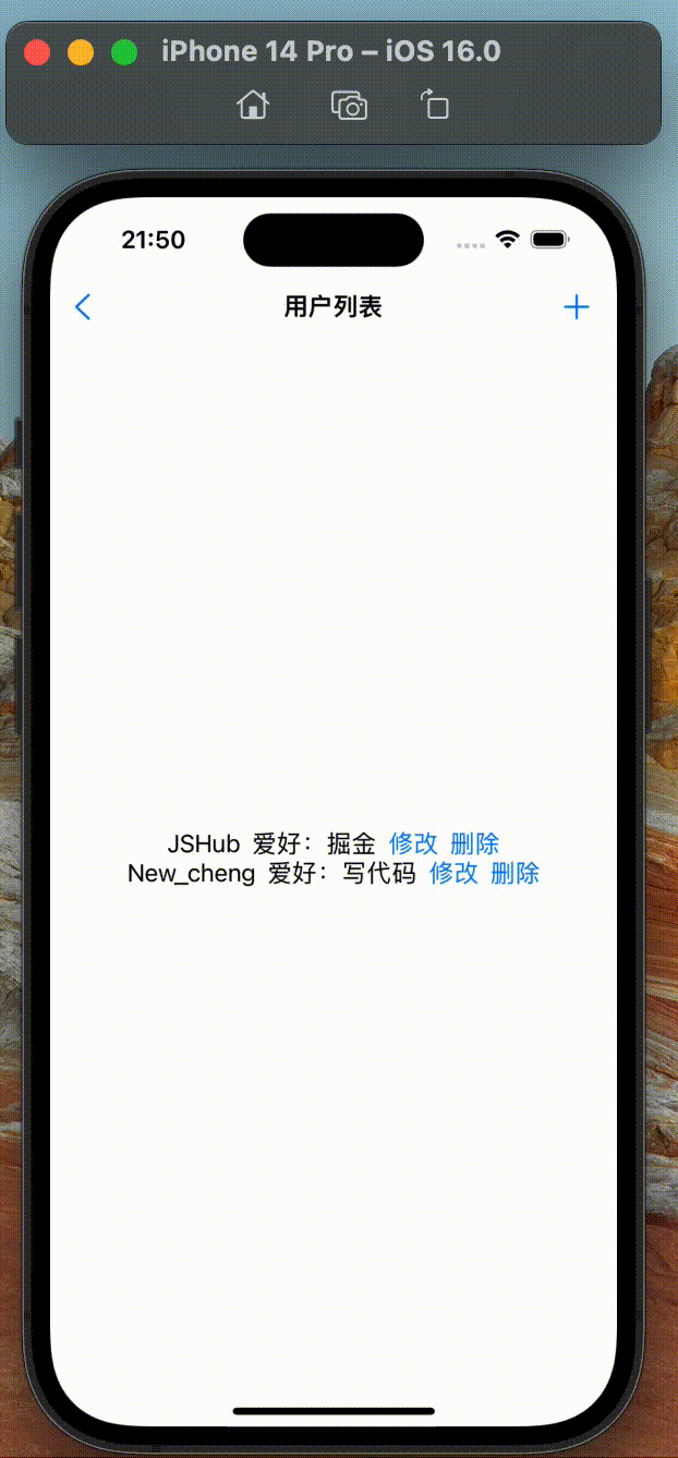 为了在 UserList 视图中显示用户列表数据,我们需要使用 @FetchRequest 来获取数据: