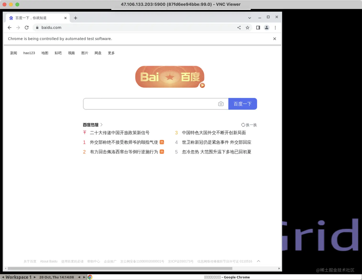 服务器IP:5900连接到VNC(密码默认输入secret),可以看到容器内初始界面。