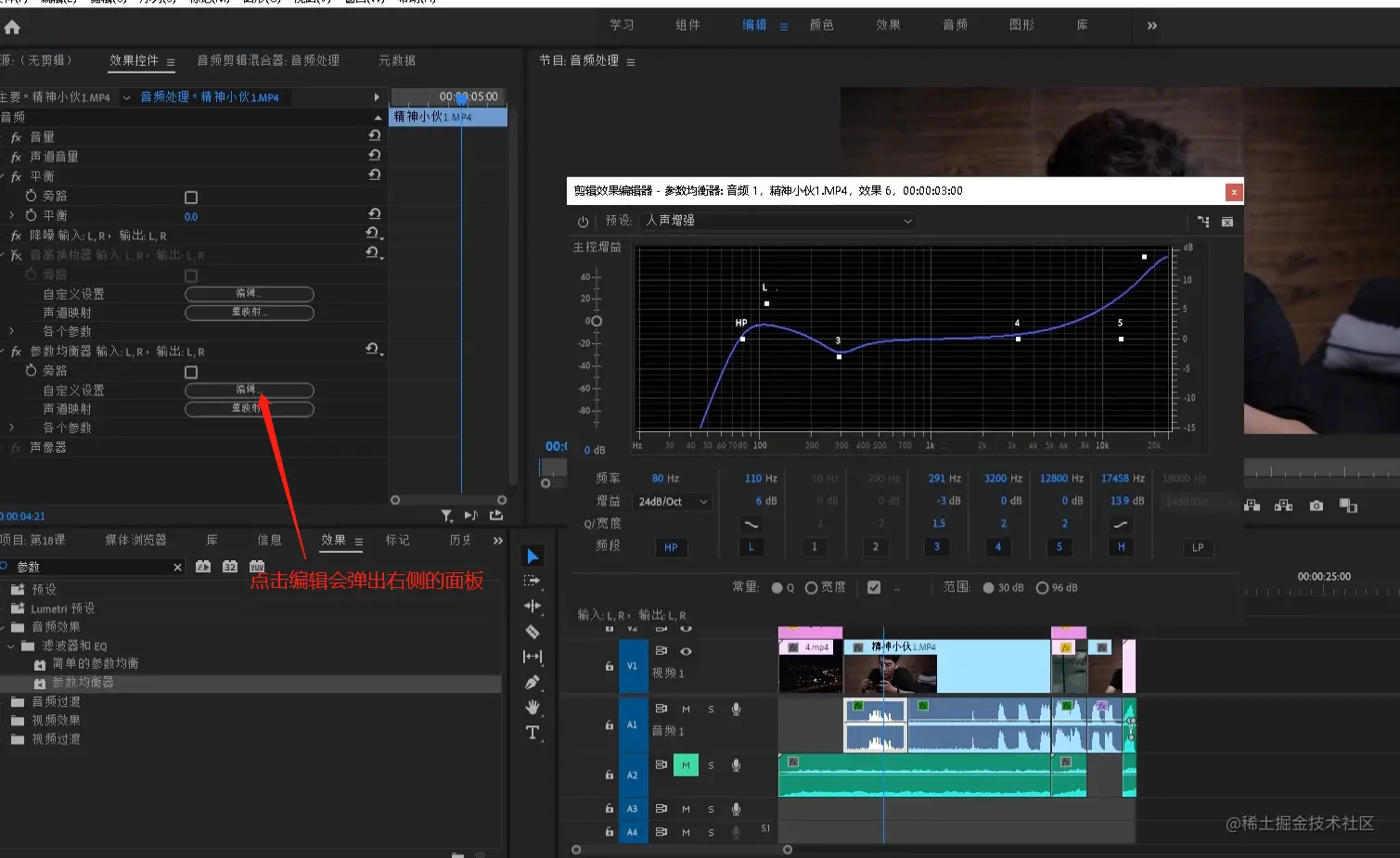 - 点击参数均衡器的编辑按钮,会弹出参数均衡器的面板来