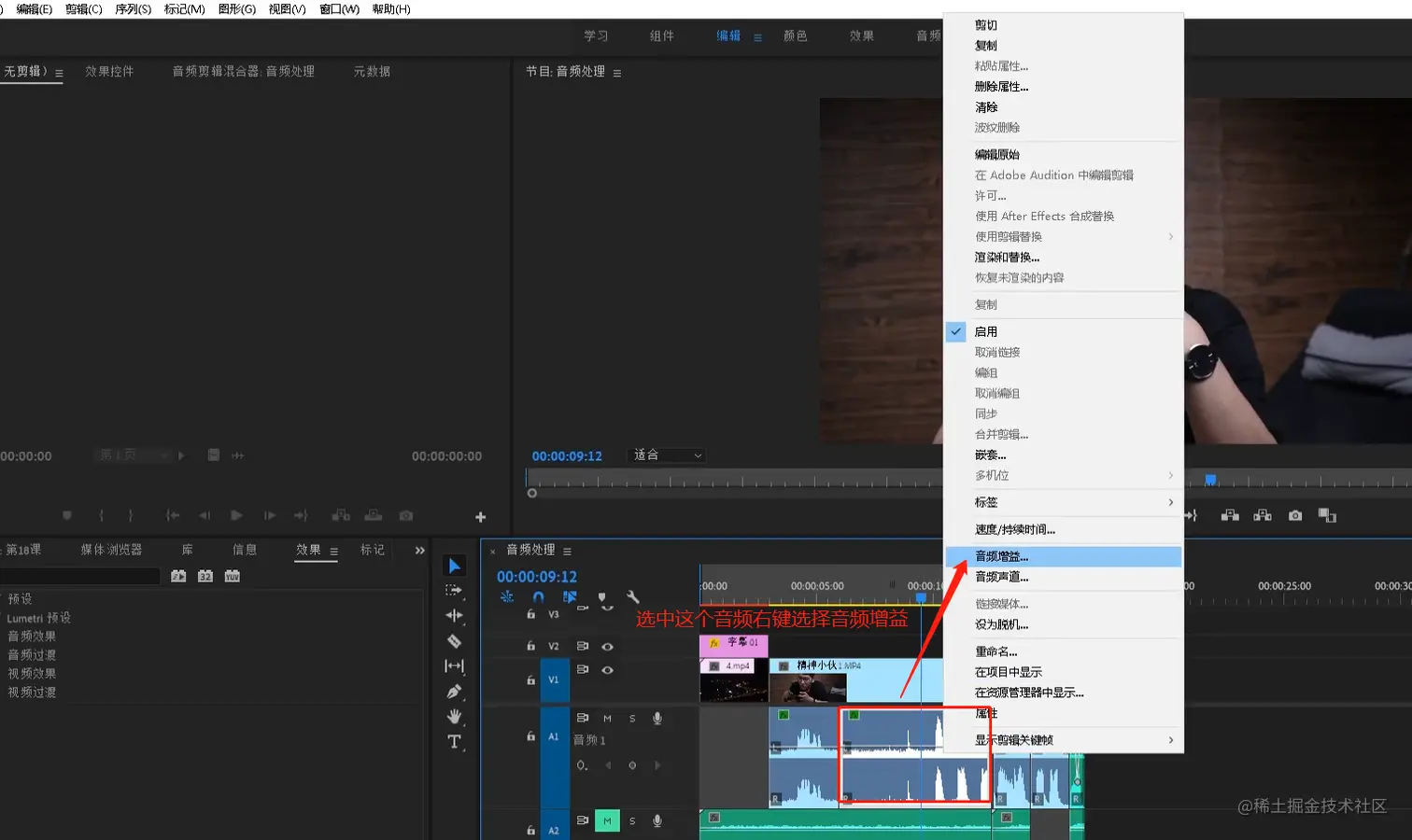 - 选中音频片段 点击右键选择
