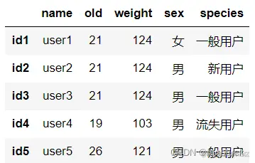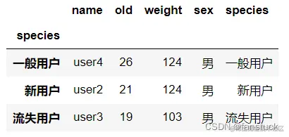 'species':['一般用户','新用户','一般用户','流失用户','一般用户']}