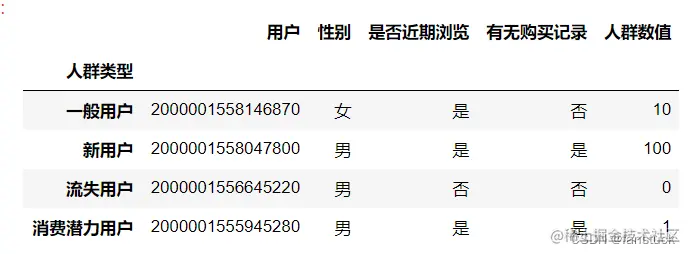 我们用两个主键人群类型和人群数值来分组: