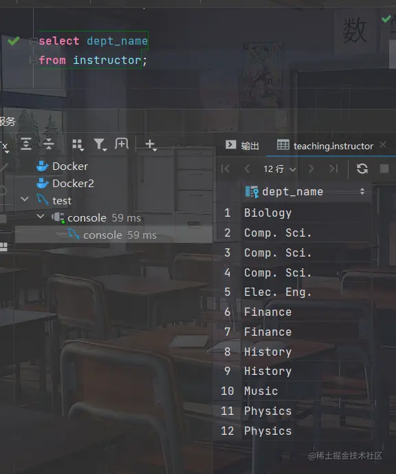 - 找出所有教师所在的系名