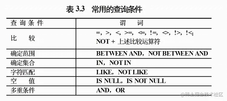 常用的查询条件