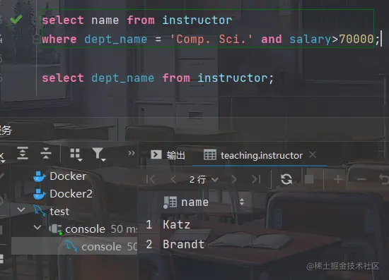 - 找出所有在computer science 系并且工资超过70000美元的教师的名字