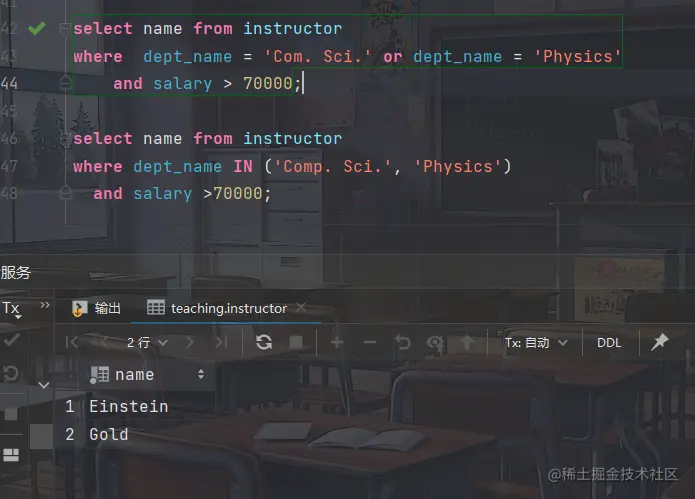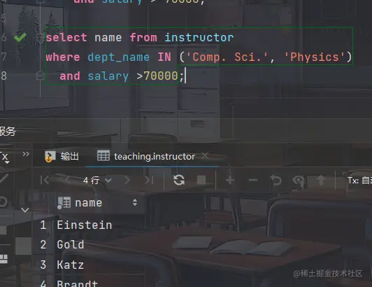 - 找出所有在computer science 和 physics系,并且工资超过70000美元的教师的姓名