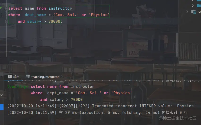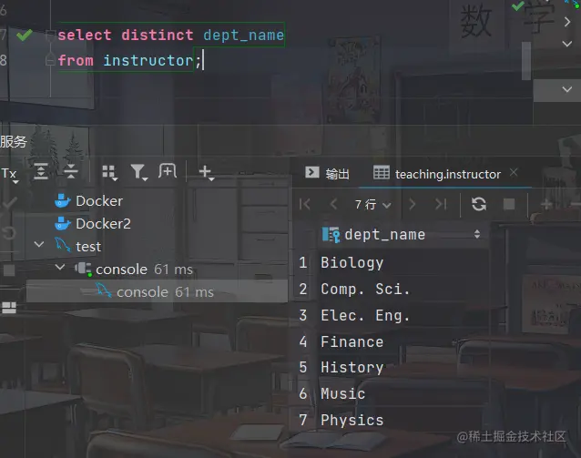 - 在select后加入关键词distinct,用来删除重复的元组