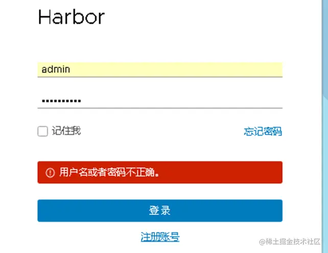 快下班的时候,开发组的同事在将编译好的镜像上传到Harbor的时候,怎么都上传不成功,提示用户名或者密码不正确。