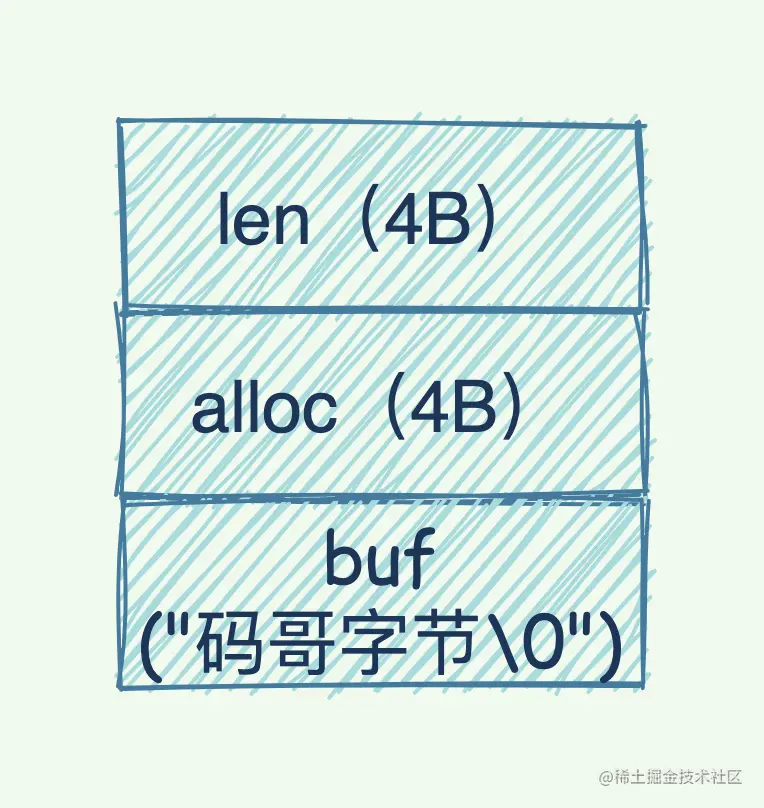 alloc:占 4 个字节,表示 buf 实际分配的长度,通常 > len。