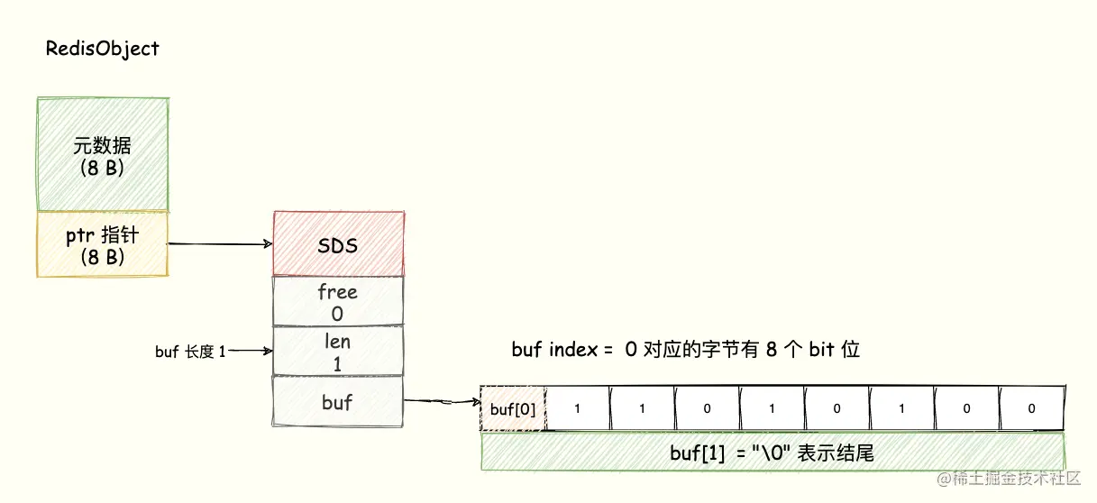 buf:字节数组,保存实际的数据,Redis 自动在数组最后加上一个 “\0”,额外占用一个字节的开销。