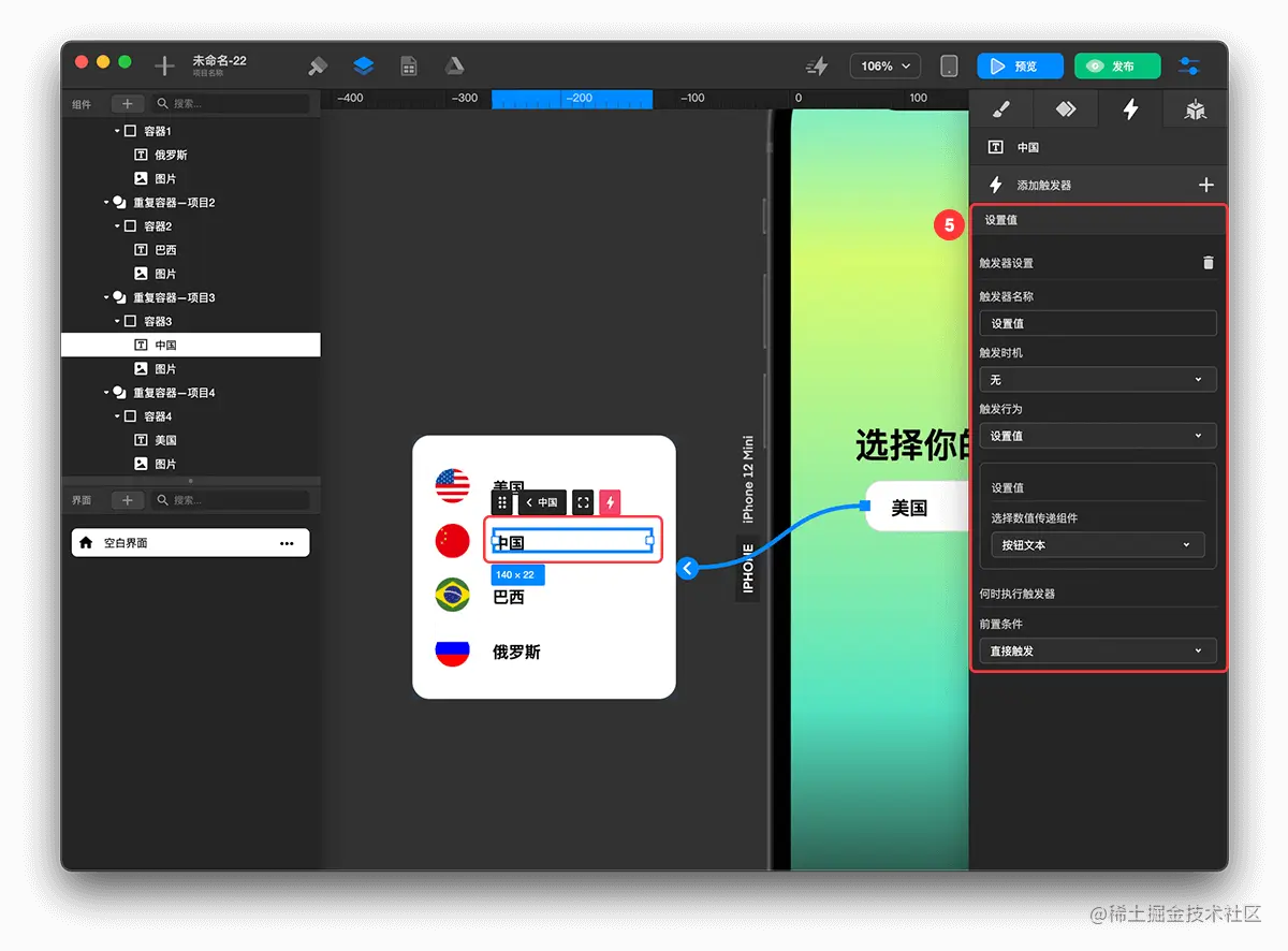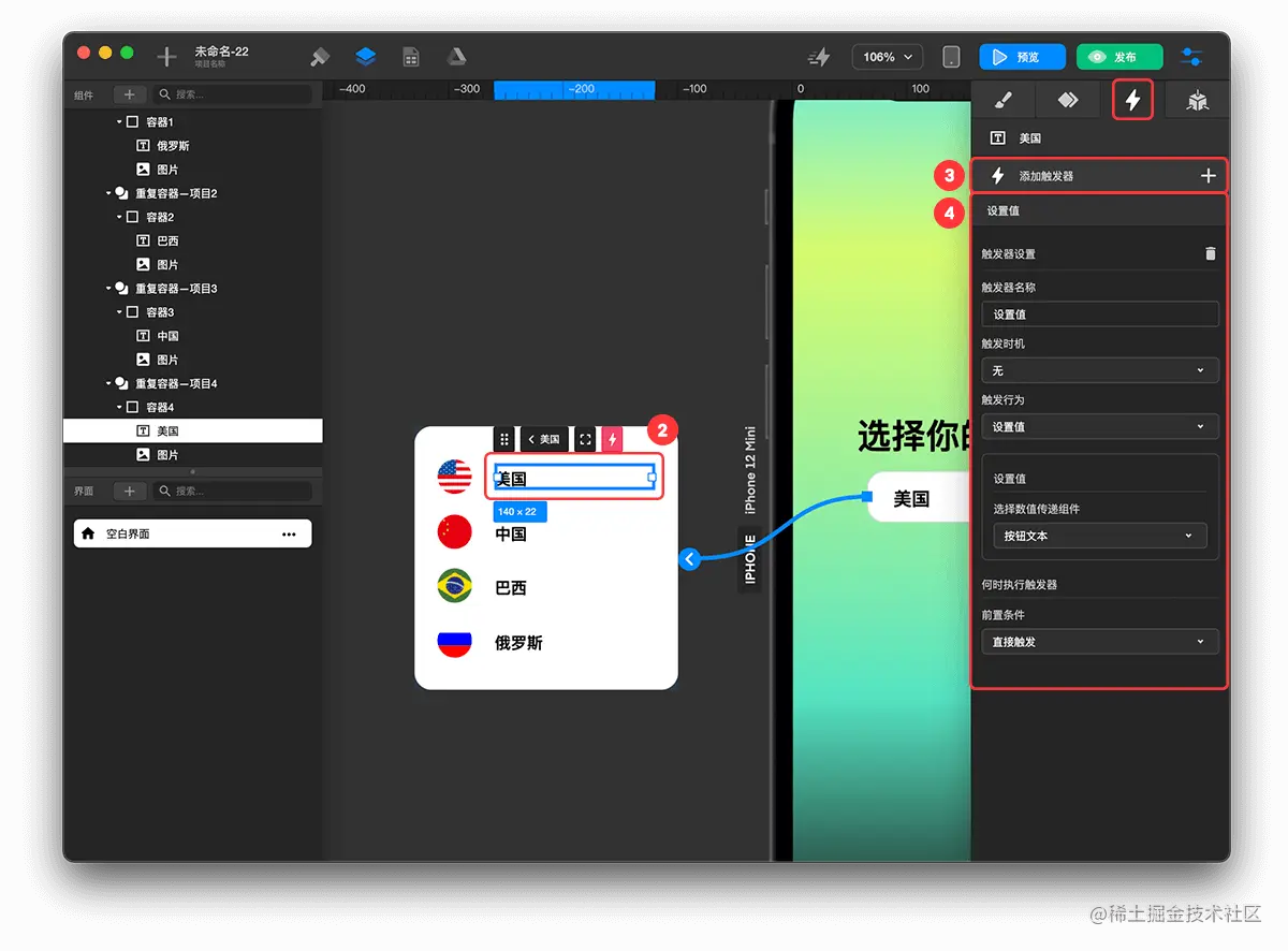 - 创建打开 浮动容器 触发器