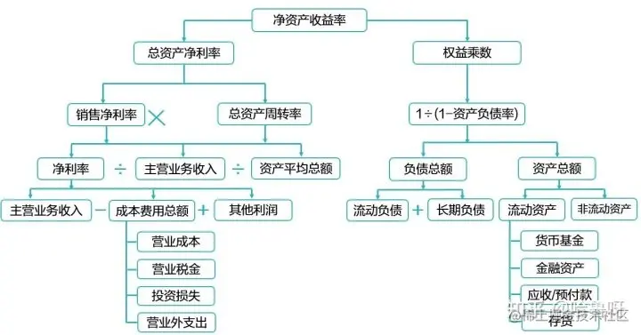它是源自于上世纪20年代美国杜邦公司为了能客观深入分析和比较企业经营效率和收益水平,将评估形式具化为三大财务指标,分别是净利润率、总资产周转率和财务杠杆(用权益乘数衡量),这三大指标又是由更细化的经营指标统计而来,以此循环往复,可以拆分出更多下游指标。